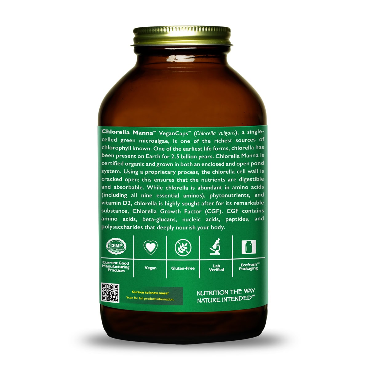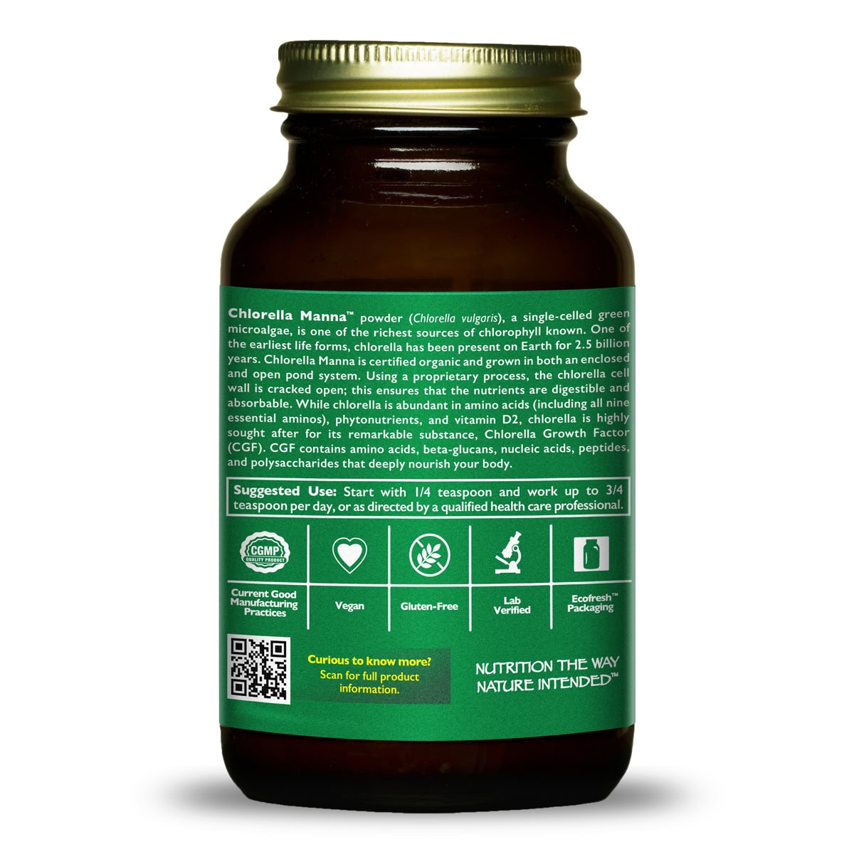 GREEN SUPERFOOD MICROALGAE: Chlorella Manna (Chlorella vulgaris) is an incredible source of full-spectrum, bioavailable, absorbable nutrients and compounds. Chlorella is a freshwater, single-celled green alga and is one of the richest known sources of chlorophyll, which accounts for its deep green color. Our certified organic chlorella is grown in a remote location in India using a hybrid production process that starts the growth process in a greenhouse of sorts and then moves the chlorella outdoors to be grown in full sun in open chlorella ponds.