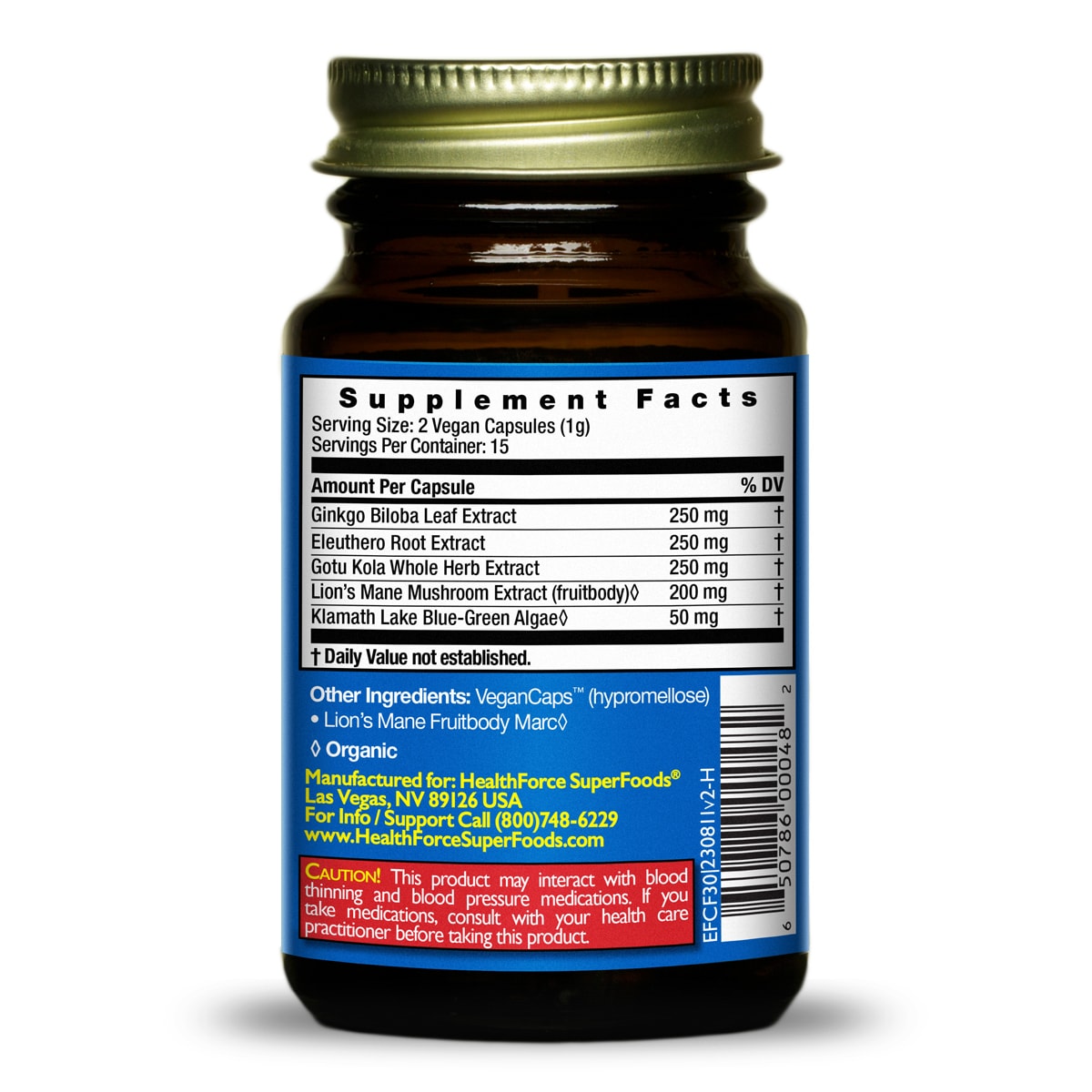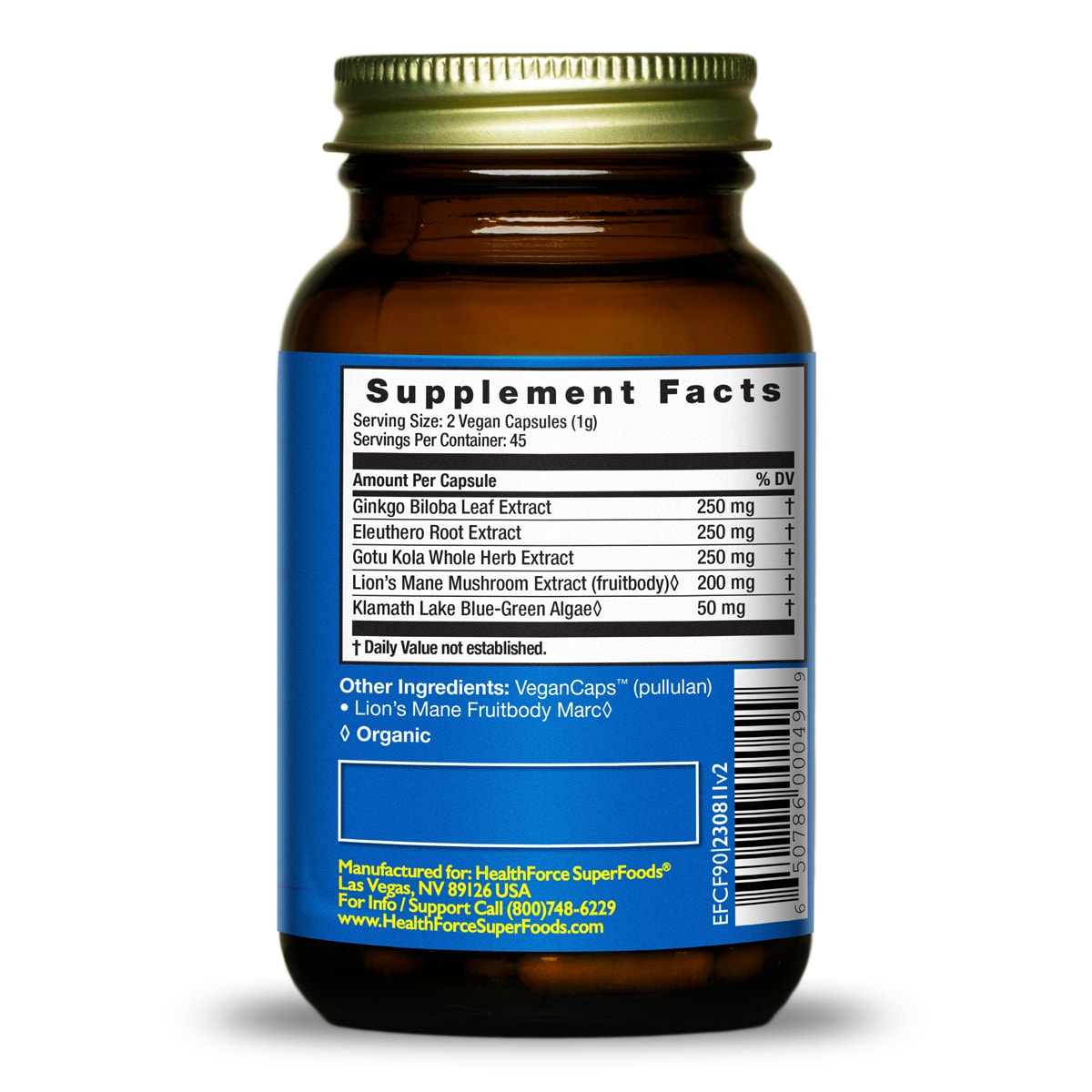 Powered by a potent blend of nature’s finest herbs: Ginkgo biloba, Eleuthero, Gotu kola, Lion’s Mane, and Klamath Blue-Green Algae, together, these exceptional herbs form an unparalleled synergy working harmoniously to support cognitive function.*