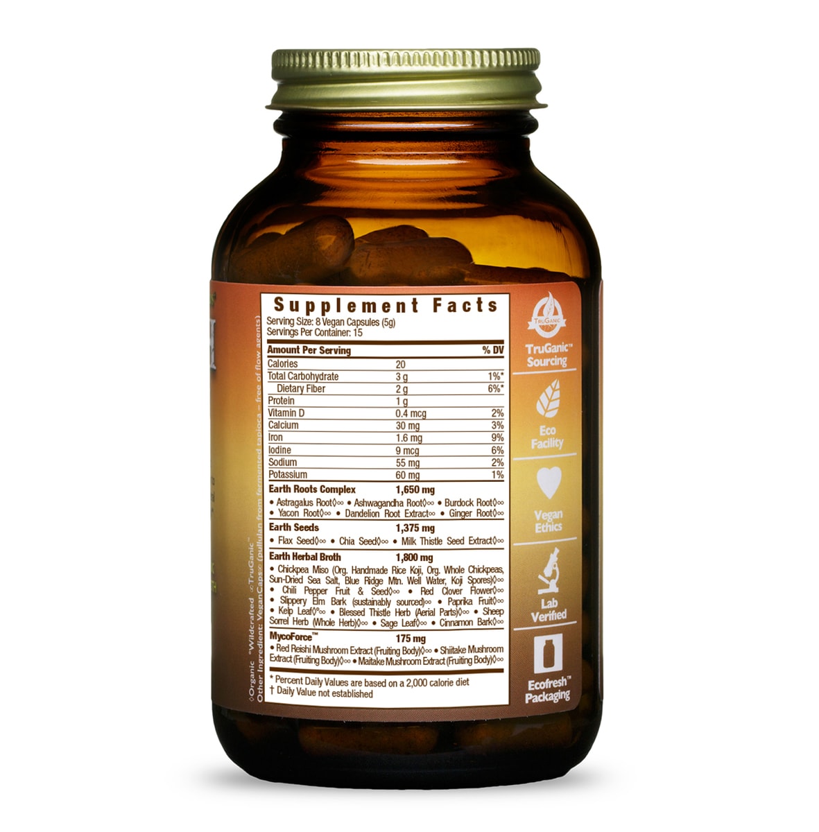UNIQUE BLEND OF ROOTS AND MUSHROOMS: This unique formula is loaded with nutrient-dense roots: astragalus, burdock, yacon, and ashwagandha, and immune-supporting mushrooms: reishi, shiitake, and maitake mushroom extracts.* The adaptogens astragalus, ashwagandha, and reishi provide vitality support by helping maintain the resilience of the body, mind, and Spirit during times of occasional stress and fatigue.*