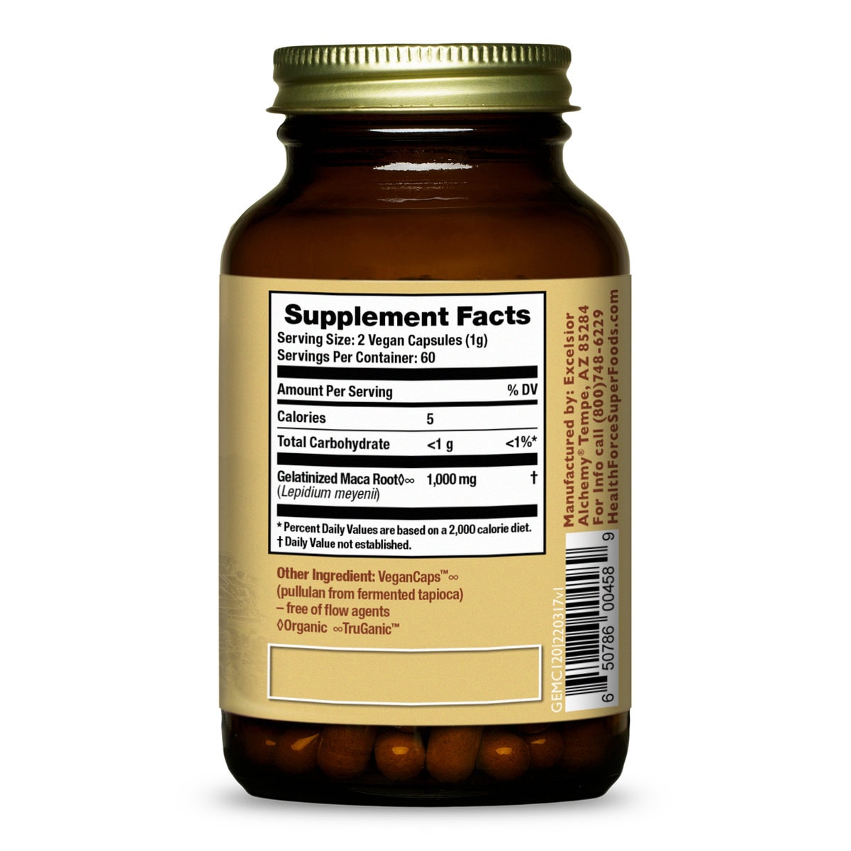 GELATINIZATION PROCESS: The maca gelatinization processes came about in the 1990s in order to make “raw” maca powder, a cruciferous root, easier to digest. Boiling and pressurization is used to greatly reduce the starch content thus creating a more concentrated maca than “raw” maca. Thus, gelatinized maca can be easier to digest than “raw” maca for those who experience digestive issues consuming “raw” maca.