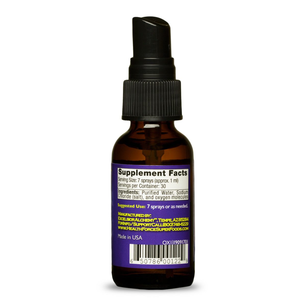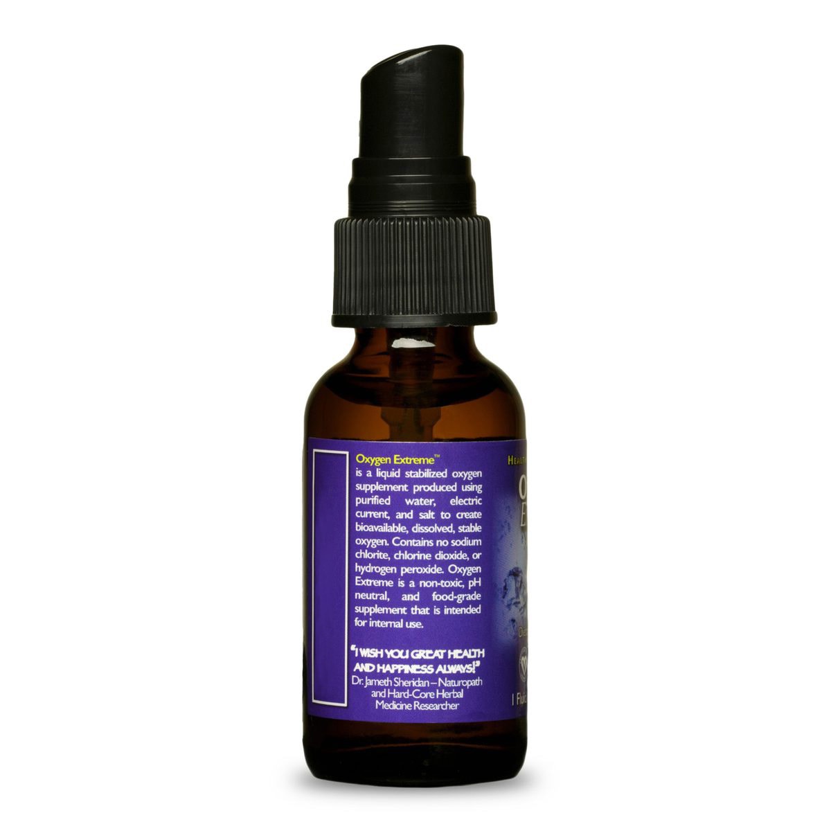 OXYGEN EXTREME™: A liquid stabilized oxygen supplement produced via a unique, proprietary process that bonds oxygen in a solution of purified water (reverse osmosis) and 99.9% food-grade sodium chloride (no additives).